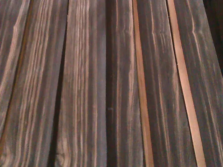 Ebony is prized for its deep black color and dense texture, ideal for fine furniture, musical instruments, and luxury decor.