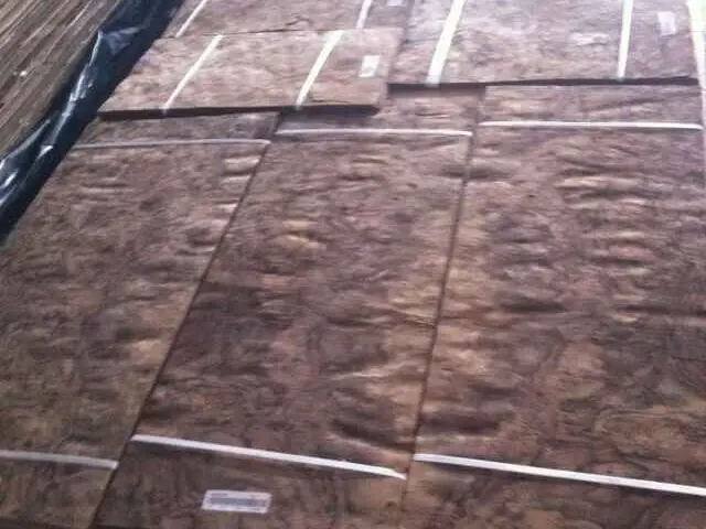 Features distinctive clustered burl patterns with intricate swirls and eyes. Mappa veneers create striking visual impact and are ideal for statement pieces and accent applications.